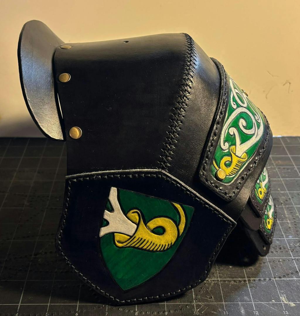 A Leather Shoulder Armor Pattern, this Pauldron is for SCA rattan combat, costume, or cosplay. It comes with Viking Knotwork that you can carve onto the leather if that's something you'd like to do ( see photos ).